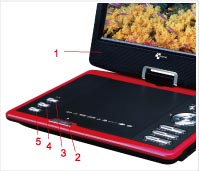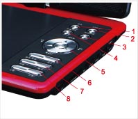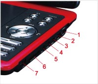 1.DC IN 9-12V 2. OFF/ON 3. AV IN 4.AV OUT 5.EARPHONE 6. MMC/SD/MS 7.USB